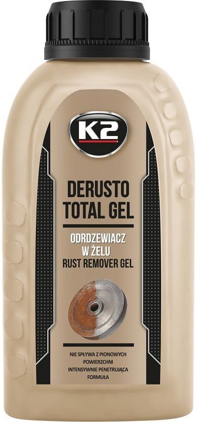 K2 DERUSTO TOTAL GEL on geelja konsistentsiga professionaalne roosteeemaldaja, mis ei voola vertikaalsetelt pindadelt maha. Eemaldab kiiresti ja tõhusalt roostet igat tüüpi metallidelt. Peale veega lahjendamist sobib ka plaatidelt ja sanitaardetailidelt jääkide eemaldamiseks. Rooste vahedega elementide puhul soovitame kasutada teist suurepärast K2 DERUSTO+ seeria roosteeemaldajat, mis eemaldab rooste kogu elemendi sellesse kastes.