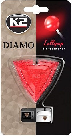 K2 DIAMO õhuvärskendaja on dekoratiivse vääriskivi välimusega õhuvärskendaja, muudab autosalongi välimuse ainulaadseks ja prestiižseks. Sisaldab lõhnaainega immutatud graanuleid, mis on pikaajalise toimega ja tagavad aroomi ühtlase jaotumise. Õhuvärskendaja kinnitatakse auto ventilatsiooniava ribide külge komplektis sisalduva spetsiaalse klambriga või riputuskummi abil peegli külge.