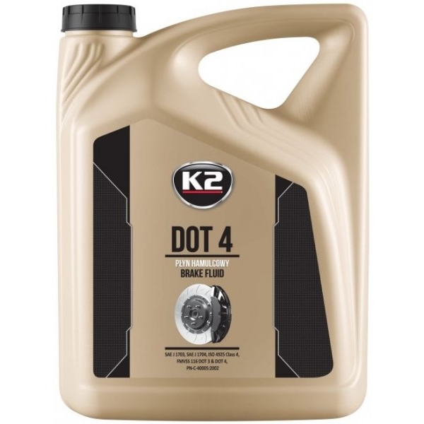 K2 DOT 4 on täissünteetiline pidurivedelik, mida kasutatakse suure koormusega autode piduri- ja sidurisüsteemides. DOT 4 pidurivedelikul on suurepärased reoloogilised parameetrid, mis võimaldavad seda kasutada väga madalatel temperatuuridel. See on neutraalne pidurisüsteemis kasutatavate tihendite ja metallisulamite suhtes ning kaitseb seda korrosiooni eest. K2 DOT 4 pidurivedeliku keemispunkt on üle 230°C. Toode on täielikult segunev teiste DOT-klassi vedelikega. Pidurivedelik on mõeldud ABS, ESP, ASR, SBC süsteemidega autodele. See vastab Poolas kehtiva standardi PN-C-40005:2002 nõuetele, samuti Ameerika standarditele FMVSS 116 DOT4, SAE J 1703, SAEJ 1704, ISO4925, Class 4, FMVSS 116. K2 DOT 4 pidurivedelik on mõeldud asendamiseks igat tüüpi autodes, kus kasutusjuhendis on ette nähtud DOT 4 või DOT 3 vedeliku kasutamine. Pidurivedelikku on soovitatav vahetada iga 2 aasta tagant või iga 40 000 km järel.