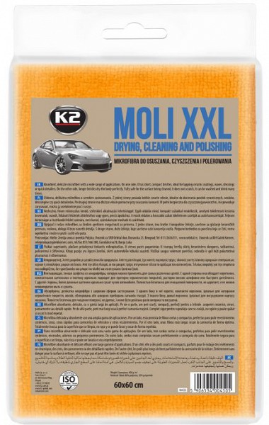 K2 MOLI on väga imav, õrn mikrokiud, mida saab kasutada mitmekülgselt. Ühest küljest on sellel lühikesed kompaktsed harjased, mis sobivad suurepäraselt keraamiliste kattekihtide, vahade, sidemete või detailide katmiseks, teisest küljest aga pikemad harjased suurepäraselt kuivatama auto kere pinda ilma triipe jätmata. Materjal, millest see on valmistatud, on ohutu igale puhastatud pinnale, see ei kriimusta. Seda saab mitu korda pesta ja kuivatada.