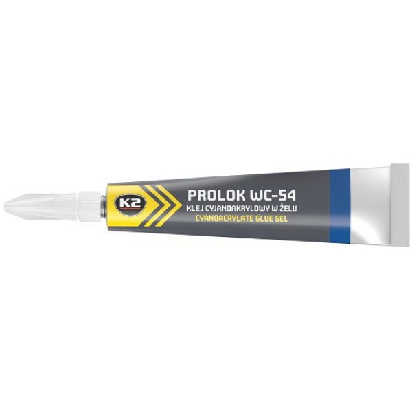 Kõrge nakkuvusega ja kiiresti kuivav tsüanoakrülaatgeelliim. Sobib ideaalselt metalli, plasti, puidu, kangaste, paberi, naha jne liimimiseks. Pärast kuivamist on sellel kõrge tugevus ja vastupidavus veele ja õlidele. Oma tardumisaja ja laia kasutusala tõttu peetakse Prolok WC-54 liimi multifunktsionaalseks liimiks, mida kasutatakse sageli tööstuses, reklaamitööstuses, töökojas ja kodus. Tänu oma geeljale konsistentsile sobib see ideaalselt vertikaalsete pindade liimimiseks, ilma liimi voolamise ohuta. Samuti sobib see imavate ja poorsete materjalide (puit, kangad jne) liimimiseks. Koos K2 tsüanoakrülaatliimi krundiga PROLOK WC-70 liimib ka tõhusalt selliseid materjale nagu: polüpropüleen (PP), polüetüleen (PE), EPDM, polütetrafluoroeteen PTFE ja kumm. Temperatuuritaluvus -55°C kuni +80°C.