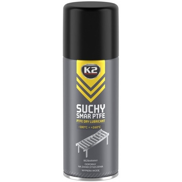 K2 PTFE Dry Lubricant on kõrgtehnoloogiline kuivmääre, mis loob elementide pinnale õhukese, värvitu ja mittekleepuva PTFE-kihi. Toode ei sisalda silikooni ning tagab madala hõõrdeteguri, tõrjudes tõhusalt tolmu, mustust ja vett.