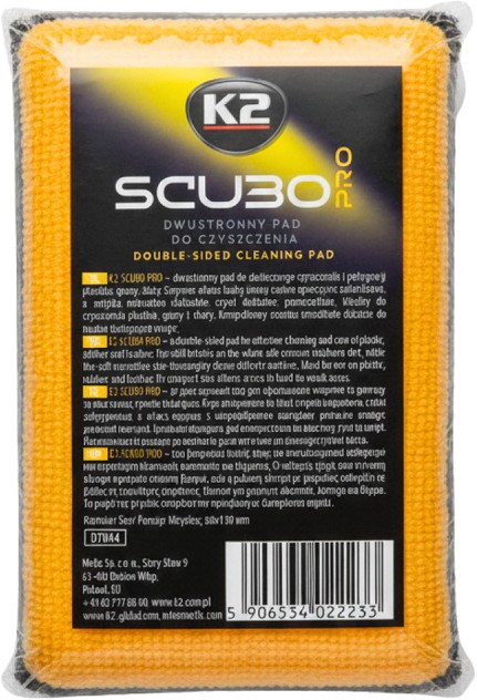 K2 Scubo Pro on kahepoolne puhastuspadi, mis ühendab endas kaks erinevat puhastusomadust ühes kompaktses vahendis. See sobib ideaalselt plastiku, kummi ja naha puhastamiseks nii auto sise- kui välispindadel.
