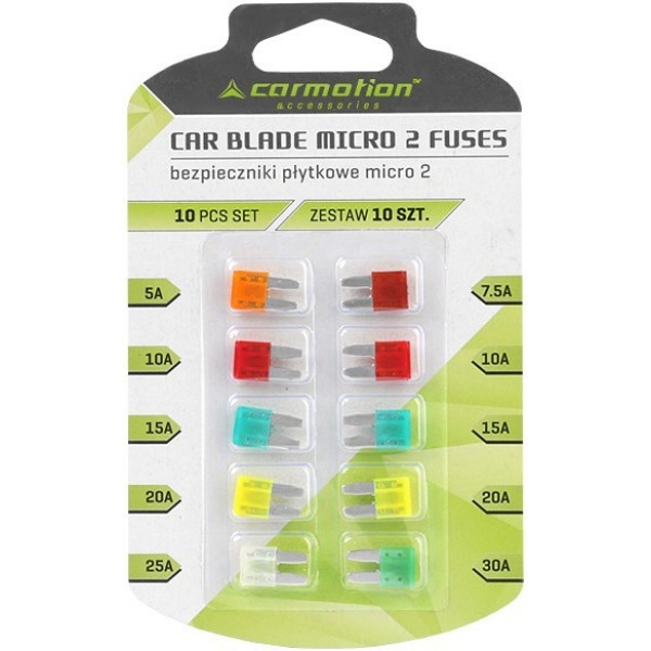 Micro 2 kahvelkaitsmete komplekt, mida kasutatakse elektriliste ahelate kaitsmiseks ülekoormuse eest. Sõltuvalt vooluringist kasutatakse erineva võimsusega kaitsmeid. Kaitsmed sobivad kasutamiseks sõiduautodes, kaubikutes ja veoautodes.