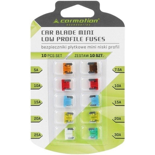 Madalate mini kahvelkaitsmete komplekt, mida kasutatakse elektriliste ahelate kaitsmiseks ülekoormuse eest. Sõltuvalt vooluringist kasutatakse erineva võimsusega kaitsmeid. Kaitsmed sobivad kasutamiseks sõiduautodes, kaubikutes ja veoautodes.