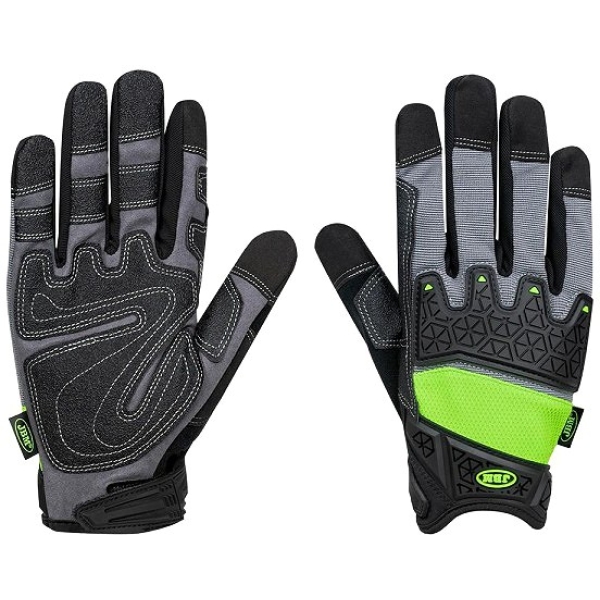 Tippkvaliteediga töökindad proffidele. Hingav, spetsiaalsest sünteetilisest kangast kinnas, mida on peopesa osas tugevdatud tikitud patjadega. Kinda seljaosa on katud kummikattega, vältimaks käeselja kahjustamist. Sõrmeotsad on valmistatud spetsiaalmaterjalist, mis võimaldab puutetundlike ekraanide (touchscreen) kastutust. Takjaspingutusega randmeosa. Kinda haare on tugev ja libisemiskindel – sobib ideaalselt kasutamiseks võtmete, käsitööriistade, elektri- ja akutööriistade ning lööktööriistadega. Lõikekindlad (1). Riputuspakend.