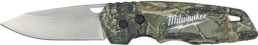 Vajutus- ja klappmehhanism tagab lihtsa ühe käega avamise. Roostevabast terasest kukkumispunktiga tera. Puksiga lukk fikseerib tera avatud asendisse. Vastupidav vööklamber, kinnitusvalmis kaelapaela-ava. Kamuflaaž-disainiga. Tera pikkus 78 mm.
