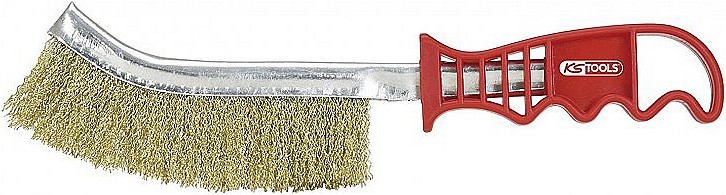 Plastkäepidemega. Pinnatöötluseks. Messingist lainesharjased. Kogupikkus 250 mm, harjasosa pikkus 145 mm.
