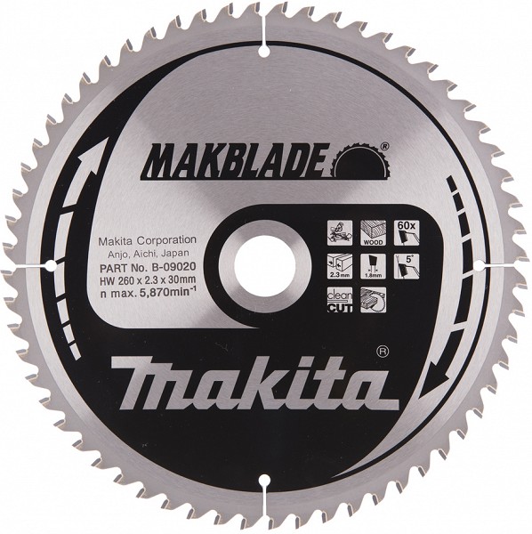 SAEKETAS 260X30X2.3MM 60T 5° RISTI. CLEAN CUT MAKITA