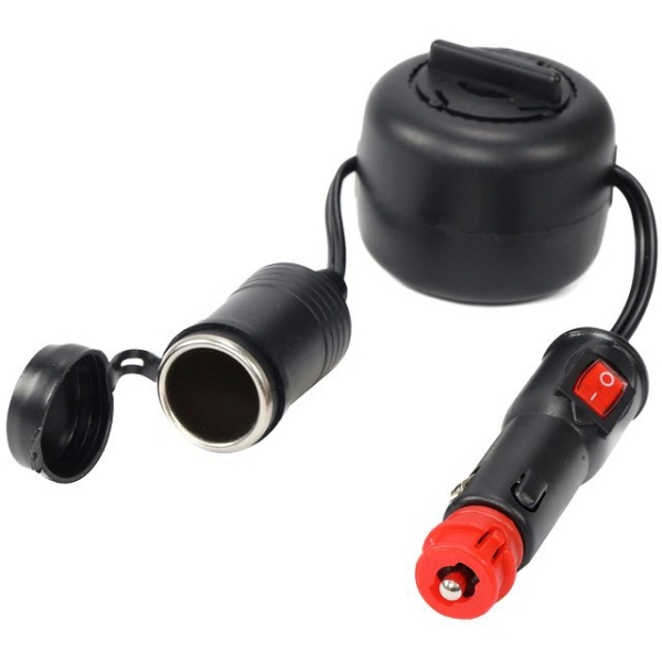 Poolil pikendusjuhe koos lülitiga. Sobib 12 V elektrisüsteemiga autodele ja masinatele.