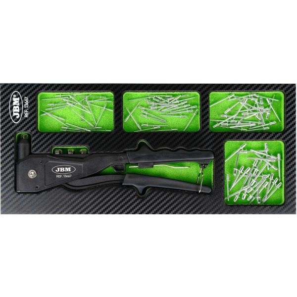 Spetsiaalses pehmes EVA paneelis tõmbeneedi tangid koos enamlevinud neetidega. Saab kasutada tööriistakärus või lauasahtlis. Foam-paneeli mõõdud 175×380 mm, paksus 30 mm.