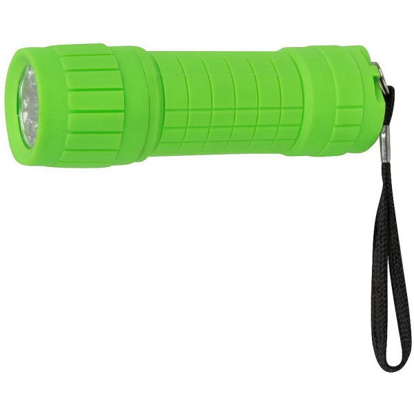 Kummikattega kompaktne taskulamp mis töötab 3xAAA patareidega (ei ole kaasas). 9-LED valguselement, 27 lm valgusjõud. Käepaelaga.