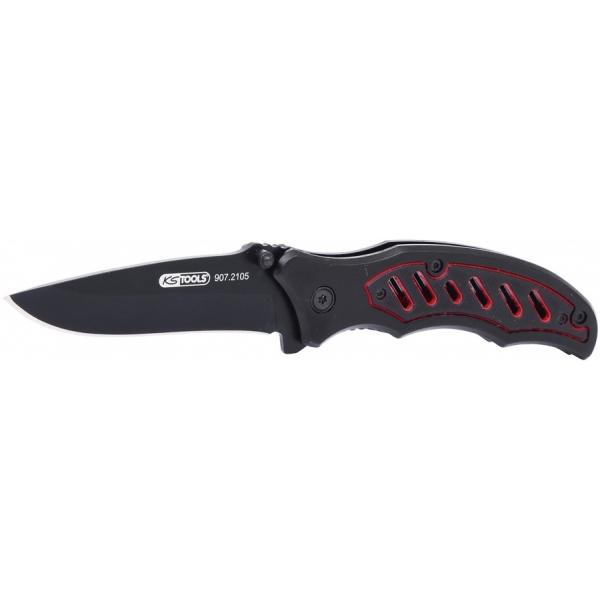 Kokkukeeratav taskunuga. Teflonkattega tera. Sõrmesüvenditega libisemiskindel käepide. Kogupikkus avatuna 193 mm.