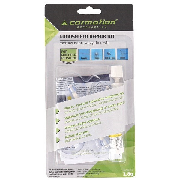 Komplekt auto tuuleklaasilt erinevat tüüpi pragude ja kriimustuste eemaldamiseks. Max 25 mm läbimõõduga ümmarguste pragude liimimiseks ja pikipraod pikkusega kuni 150 mm. Parimate tulemuste saavutamiseks tuleks parandus teha võimalikult kiiresti pärast kahjustuse tekkimist enne mustuse ja vee sattumist pragudesse. NB! Komplekt ei eemalda kahjustusi rohkem kui ühelt klaasikihilt. Täpne juhis pakendis.