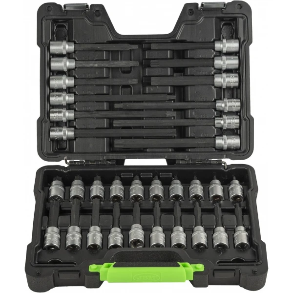 28-os. 1/2″ + 3/8″ + 1/4″ E-TORX PADRUNITE KOMPLEKT E4–E24 (PIKK/LÜHIKE) JBM